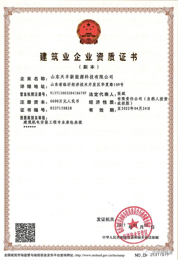 天豐部分榮譽資質(zhì):